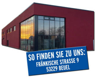 Sie finden unsere moderne Austellung im roten Haus an der B56, Fränkische Str. 9 53229 Bonn Pützchen oder rufen Sie uns an 02655 94 15 44